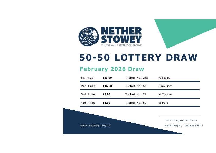 - Any concerns or complaints relating to the running of the 50-50 lottery should be emailed to treasurer@stowey.org.uk